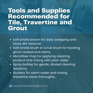 Using the right tools can make all the difference when you clean travertine tile or travertine floors. Here’s a list of essentials: